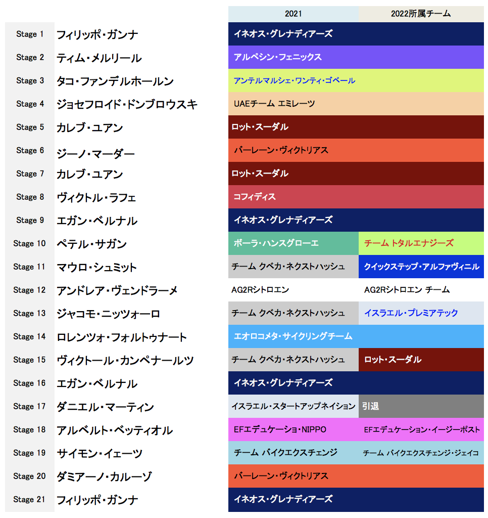 *表内の選手のUCI世界ランクと年齢は2021年12月時点。